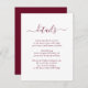 Provide your guests with important details with this elegant modern burgundy wedding enclosure card featuring a modern script font. Matching items available.