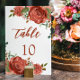 Modern Burnt Orange Floral Terracotta Wedding Table Number