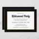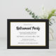 With business elegance and style, this simple minimal retirement party invitation features a thick black frame border and thin gold inset surrounding your custom text on a contrasting white background. The versatile text template may be personalize for any type of event you wish. Shown here as a retirement party invitation, all of the text may be edited to your liking.
