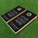 Simple and modern corporate cornhole set with minimal white typography against a black background. Add your business logo, company name, an additional one to three lines of text for your tagline, slogan, year established, website, etc., and select your bean bag colors. The colors of the background, text and circle for the bean bag can be changed to our corporation's colors by selecting to edit in the design tool or contact us with the message button above or at juliehortondesigns@gmail.com for assistance. Perfect for company picnics and employee team building events.