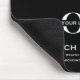 Elevate your workspace with this modern and sleek business logo mousepad. The minimalist design features your company logo, name, and contact information in the lower thirds, making it easy for clients and customers to reach you. The classic white typography pops against the solid black background, creating a professional look that's perfect for any office.