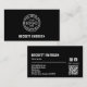 Network with these stylish black and white business cards featuring your logo and name on the front with more details, social media icons and a scannable QR Code to any URL on the back. Personalize to be uniquely yours.