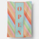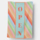 Modern flag business open in colorful pastel rainbow colors. Let your customers know your are OPEN. One of kind, I designed this pretty rainbow color in procreate in a stripe diagonal pattern.