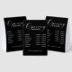 This table tent sign features a sleek black background with modern, easy-to-read typography. The high-contrast design ensures clear visibility on counters, desks, and tables.