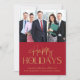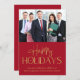 Elegant and modern red corporate business holiday card to show your customers appreciation this Christmas season featuring a photo of your company team and "Happy Holidays" in gold faux foil script and unique typography. Personalize your signature line and company name.