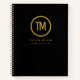 Modern initial monogram notebook circled in black and gold with personalized name. Some two letter combinations may not connect. Easily keep plans, notes and goals all in one place.