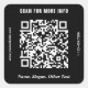 Simple modern and stylish black QR code sticker for your business. Upload your company's QR code for customers to scan, and personalize up to four lines of white text with your name, slogan, tagline, website, phone number, etc., or delete. You can change the color of the background and typography by selecting "customize further."