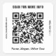 Simple modern QR code sticker for your business or organization. Upload your scannable QR code, and personalize up to four lines of text with your name, slogan, tagline, website, phone number, etc., or delete. You can change the color of the background and typography by selecting "customize further."