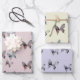 Beautiful modern wrapping paper sheets with hand-painted butterflies containing a floral rose pattern. This set includes the following three colors of paper: dusty rose pink, soft yellow and peaceful purple