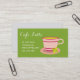 A cute modern style business card suitable for a café - either mobile café or coffee or tea shop. This whimsical design shows an illustration of a cute simple tea cup modern style with mint tea against a green background. The background colour can be changed to suit your taste. This business card is fully customisable to include your own personal details.