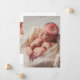 Elegant and minimalistic photo birth announcement card introduces your beautiful newborn baby girl with a landscape feature photo on the front and a simple photo collage on the back. Vertical card format. Personalize the modern white hand-lettered calligraphy script with baby's full name and customize the remaining text with all of the important birth stats.