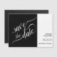 These save the date cards are simple, modern, minimalist, and elegant. They feature a contemporary two pane design. The black panel on the left has script calligraphy reading "save the date." The panel on the right has your names, the wedding date, and location in a trendy right justified layout. Beautiful way to help your friends and family remember your upcoming special day.
