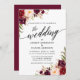 Modern Calligraphy Burgundy Floral Wedding Invitation