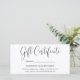 Modern Minimalist Calligraphy Script Business Gift Certificate with Envelope. Black & White.