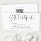 Modern Minimalist Calligraphy Script Business Gift Certificate with Envelope. Black & White. Add your website or social media web address to the QR Scan Code. Allow customers to use the scan to access information on your items such as products or menu items.
