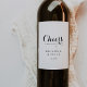 These modern calligraphy cheers wedding wine labels are perfect for a rustic wedding. The simple and elegant design features classic and fancy script typography in black and white. Make the wine bottle stickers your own by including your names and the date of your event. These labels can compliment the wedding reception, rehearsal dinner, or simply change the wording to suit any celebration.