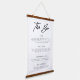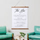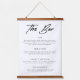Modern black and white wedding bar menu on hanging canvas with handwritten font for "The Bar" and your custom drinks menu on hanging canvas tapestry. Background and text color can be adjusted in the design tool.