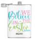 Find this perfect mug for your Easter celebrations. the flask showcases a text ' We believe in the Easter bunny' with a name below it which is personalized. Make it your own or gift it to a loved one and enjoy the Easter celebrations