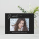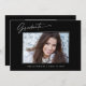 Trendy, modern and elegant graduation announcement cards, featuring design elements of modern text with calligraphy ink script. The graduate's photo on the front of the card is accented with a delicate & minimalist gradient boarder. The back of the card offers personalized text spaces for information about your graduation or can be cleared if you wish to hand write a message. Black & White or easily customize the background to match your school's primary color or any color of your choice. Perfect for the high school, college and university grad student.