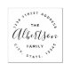 Custom-designed circular return address stamp featuring personalized family name in modern hand calligraphy. Perfect for announcements, holiday cards, invitations, and more!