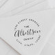 Custom-designed circular self-inking return address stamp featuring personalized family name in modern hand calligraphy. Perfect for announcements, holiday cards, invitations, and more!