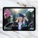 Custom-designed graduation announcement card featuring black and white modern hand calligraphy design.