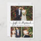 Modern Calligraphy Script Heart Minimalist Simple 3 Photo Wedding Announcement Card