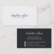 Chic and elegant business cards in inky off-black and white feature two lines of custom text in handwritten calligraphy script and block lettering. Add your full contact details to the back including social media usernames.