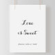 This modern calligraphy love is sweet sign is perfect for a rustic wedding or bridal shower. The simple and elegant design features classic and fancy script typography in black and white.