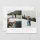 This beautifully simple grey and white, modern wedding Save the Date features hand lettered calligraphy by The Gold Paperclip, multiple (three) engagement photos and a grey diamond pattern on the back.