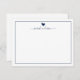 Modern navy blue heart and calligraphy script font is featured on these flat stationery note cards. Easily personalize with a name or monogram.