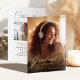 Simple and elegant graduation announcement features 2 photos with modern calligraphy in real gold foil, Custom it with your own photos and grad party information.