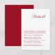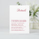The Modern Calligraphy Red Wedding Detail Card is a chic addition to your wedding stationery suite. Featuring elegant, flowing calligraphy paired with a vibrant red design, this detail card offers your guests essential information in a stylish format. Perfect for sharing details such as directions, hotel accommodations, wedding timeline, and dress code, this card ensures that your guests are well-prepared for your special day. Its sophisticated design ties beautifully with a red-themed wedding, adding a touch of class and clarity.