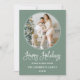 Modern Calligraphy Round Photo Frame Sage Green Holiday Card