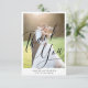 Elegant, romantic, trendy chic, hand-lettered black script wedding thank you card template with two photos, your custom text, and signature.