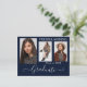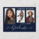 Modern Calligraphy Script 3 Photo Blue Graduation Postcard
