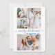 Modern Trendy Calligraphy Script 4 Photo Family Photo Collage Merry Christmas Holiday Card - Dusty Blue