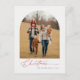 Share the magic of the season with this modern Christmas postcard featuring your favorite family photo framed in a soft arched layout. The elegant mix of black typography and red handwritten calligraphy adds a warm, stylish touch to your merry Christmas greeting. With its minimalist white background and timeless design, it’s perfect for sending personal holiday wishes. Add your photo and message to create your custom keepsake today.