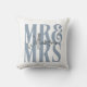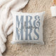 Modern Calligraphy Script Mr Mrs Wedding Blue Throw Pillow