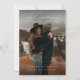 This modern calligraphy wedding invitation combines the elegance of timeless black and white with a contemporary, chic style. The front features a romantic photo of the couple, set against a serene nature backdrop, capturing the essence of a casual, outdoor wedding. The minimalist design is enhanced by the inclusion of a QR code on the back, seamlessly merging traditional and digital elements, making it perfect for a stylish winter or destination wedding. The whimsical, boho-inspired calligraphy adds a touch of rustic elegance, making this invitation ideal for couples who seek a simple yet refined way to invite their loved ones to share in their special day.