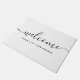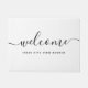 Doormat featuring the word "Welcome" in modern calligraphy script and that you can personalize with your street address all against an editable background color (click customize to change) that's perfect for your own home or your rental property, hotel, bed and breakfast, etc.
