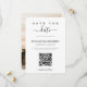 Modern and elegant design printed Minimalist Calligraphy Script QR Code Photo Save the Date that can be customized with your text. Please click the "Customize it" button and use our design tool to modify this template. Check out the Graphic Art Design store for other products that match this design!