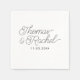 A white and black text modern calligraphy script design on wedding reception napkins. Customize the color and replace the text using the personalization option.