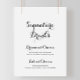 This modern calligraphy signature drinks sign is perfect for a rustic wedding. The simple and elegant design features classic and fancy script typography in black and white. Personalize the sign with the names of the bride and groom and their favorite drink choice.