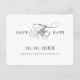 A timeless and elegant save the date postcard featuring refined calligraphy script on a classic background, perfect for a formal and sophisticated wedding celebration. For customization or additional products featuring this design, please feel free to contact me.