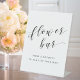 Custom-designed wedding flower bar table sign featuring modern hand calligraphy design.