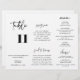 Turn this paper sheet into a modern wedding tri-fold menu, table number and program with information about the timeline, things that are good to know, food and bar menu. Simply fold, tape the seam on the back and use this modern wedding stationery program for your wedding reception.