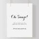 This modern calligraphy wedding oh snap sign is perfect for a rustic wedding or bridal shower. The simple and elegant design features classic and fancy script typography in black and white. Personalize the sign with your wedding hashtag.