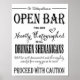 Bring laughter and personality to your celebration with this humorous wedding sign. Featuring sleek modern calligraphy in black on a crisp white background, it reads: “This wedding has an open bar. It will be heavily photographed so all drunked shenanigans will be documented and thoroughly mocked for years to come. Proceed with caution.” Perfect for weddings, rehearsal dinners, bachelor/bachelorette parties, or any festive gathering, this sign adds a playful warning for your guests while looking stylish on any bar, table, or entryway. Designed by The Arty Apples, this versatile print blends modern elegance with cheeky humor, making it a memorable conversation starter for your event.