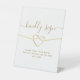 Elegant, simple pure white Kindly Sign wedding tabletop sign with faux gold rope heart and modern calligraphy script.